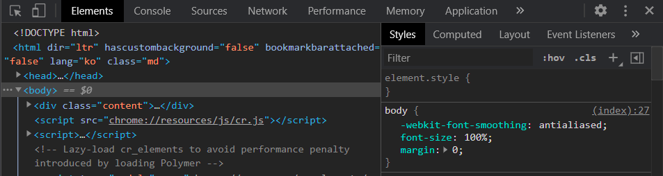 우선 크롬을 키고 개발자도구(F12)를 엽니다.