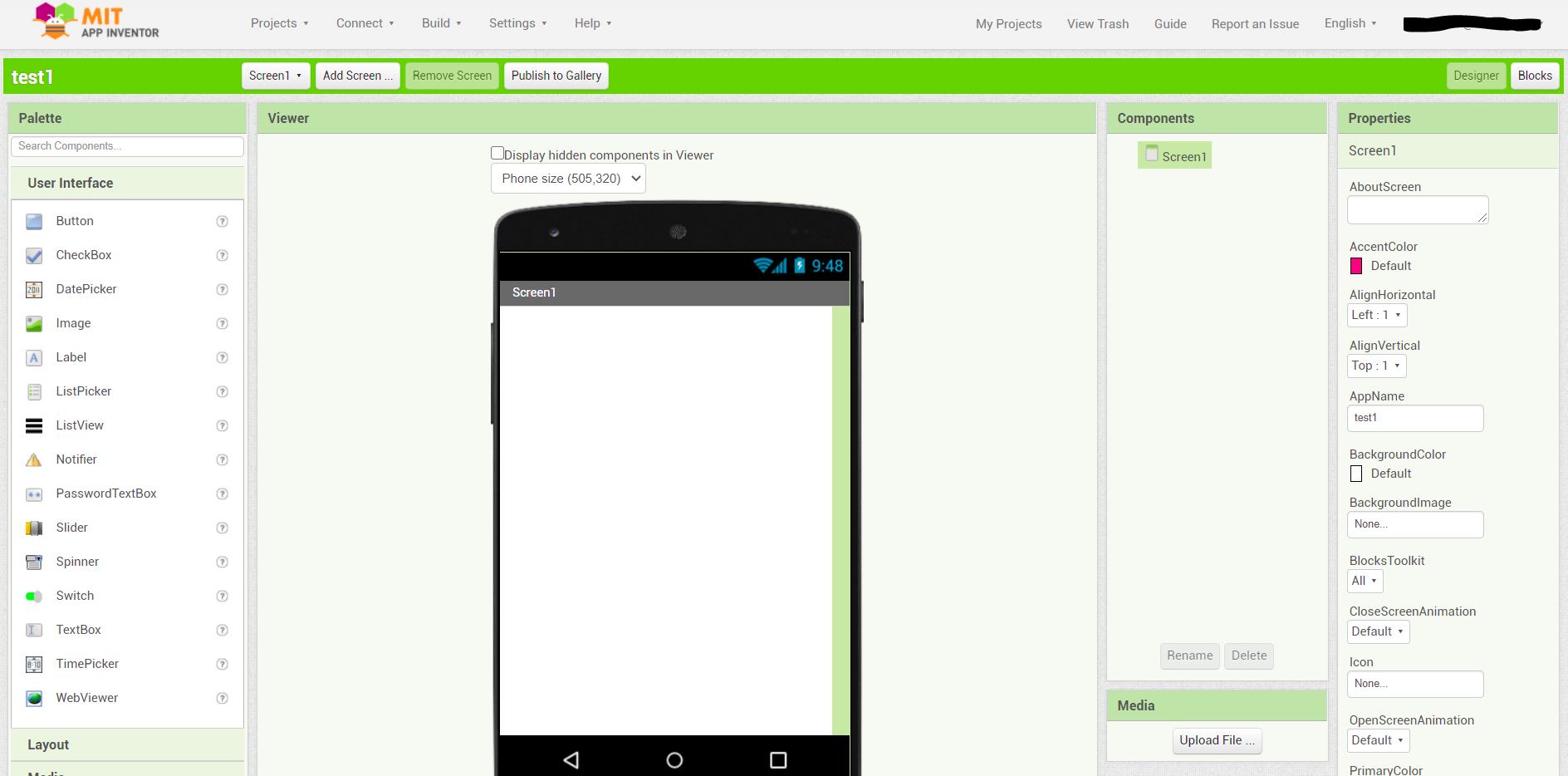 다시 앱 인벤터 화면 상단 connenct 메뉴에서 AI Compaion을 선택한 후